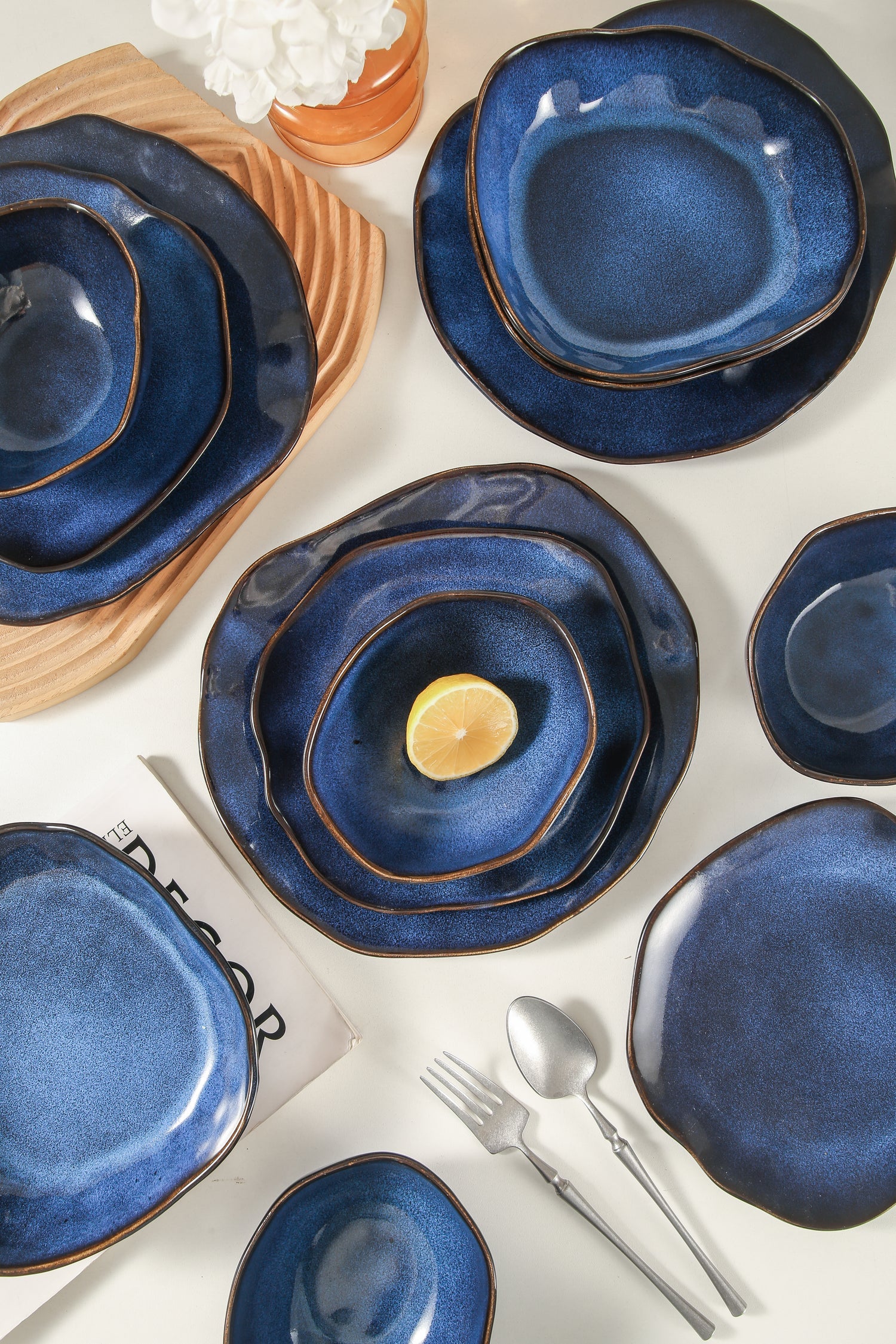 3-Piece Stoneware Serving Platter Set in Ocean Blue
